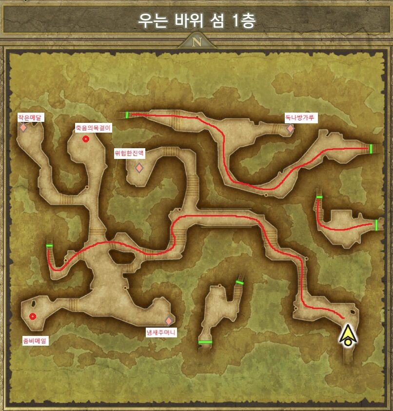 이름답게 미니맵도 없고 지도도 사용하지못한다 딱히 공략법이 있는게 아니라 계속 북동쪽으로 헤메다보면 이벤트가 발생한다 (인면수x2 조합을 조심)