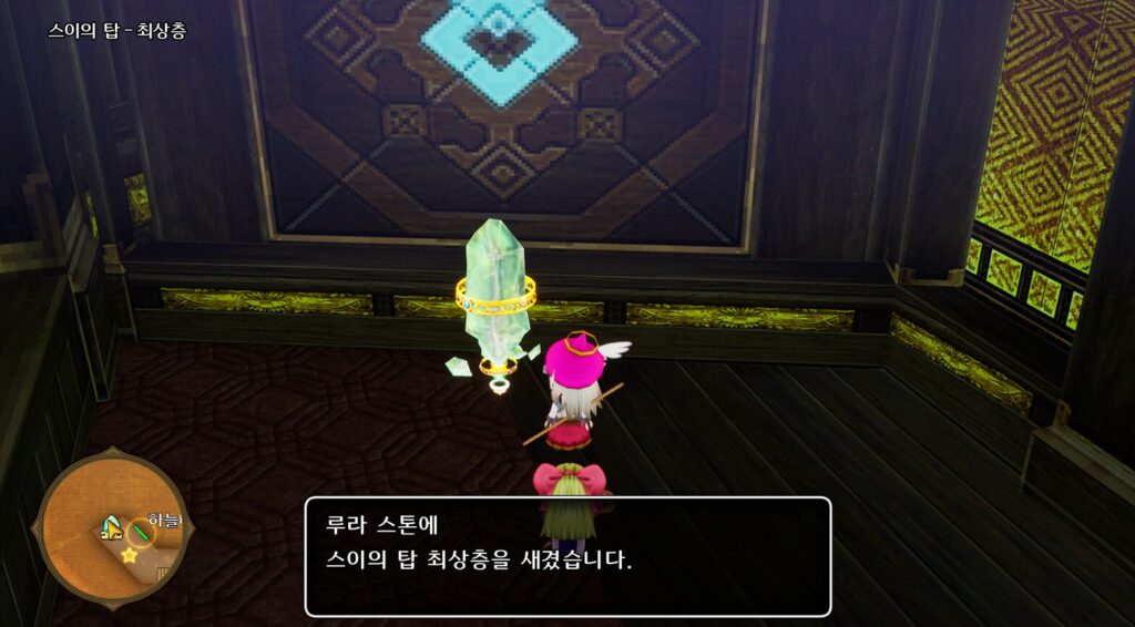 최상층 7층에 도착하면 계단뒤의 상자에서 아이템을 얻고 비석에 루라를 등록하자. 정비타임