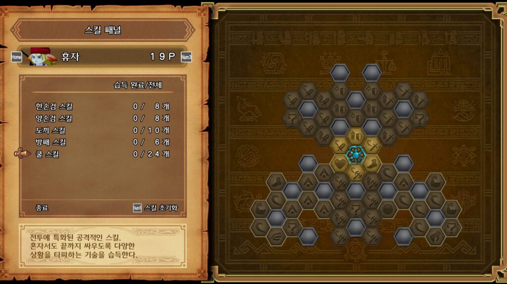 전형적인 공격형전사 포지션. 휴자역시 주인공과 다르게 스킬패널마다 찍는게 아닌 한패널에서 스킬들을 공유한다