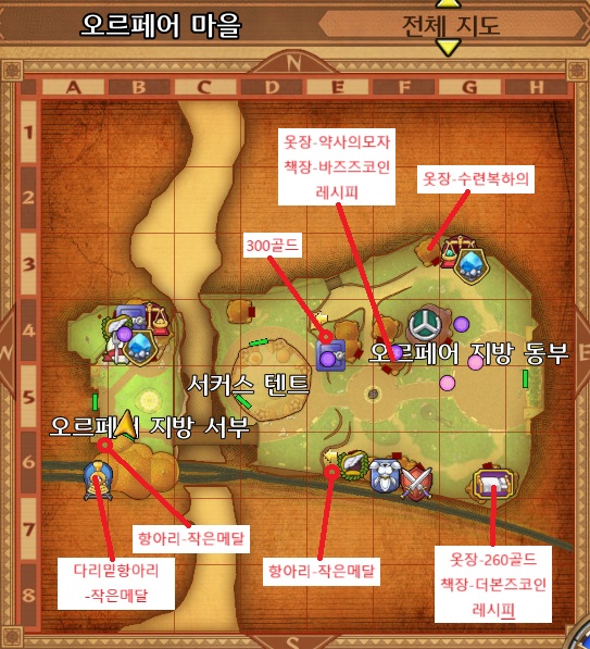 다음 목적지는 하얀색키 엠블럼이 있는 오르페어 마을(푸크리포)이다