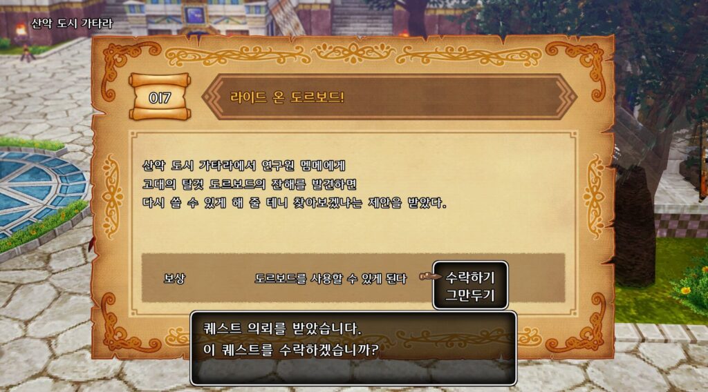 이곳에선 광장에 멤메와 대화하여 도르보드를 탈수있는 퀘스트도 있으니 꼭하자 (이동속도2배)