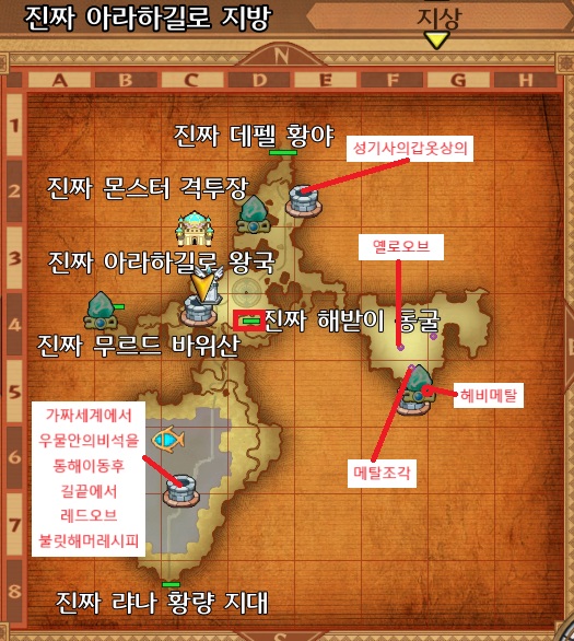 왕국을 탐험한후 왕국을 나와 진짜 아라하길로지방D4 진짜 해받이동굴로 향하자