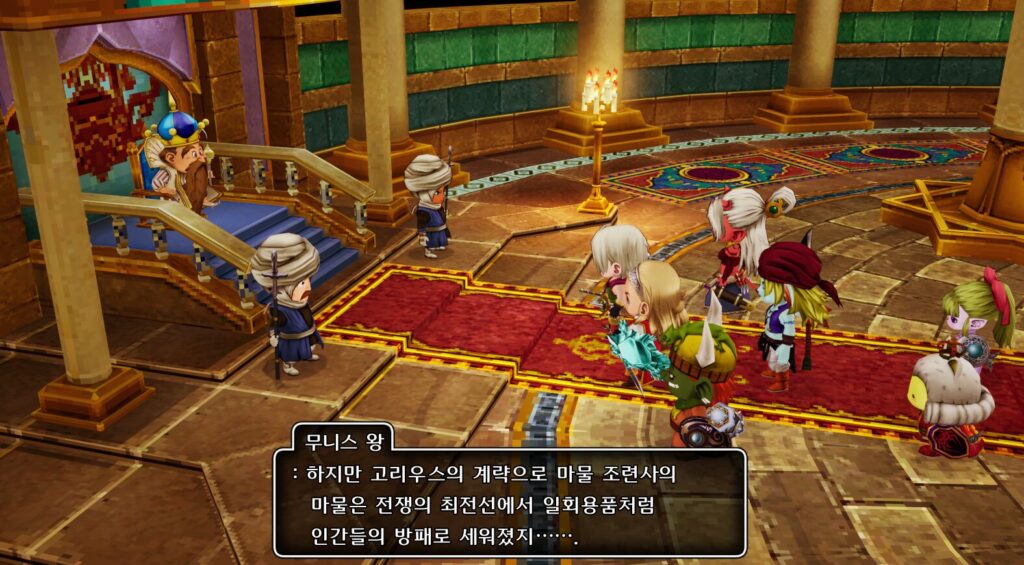 이번 오프라인은 다른드퀘시리즈와 다르게 번역이 살짝부실하다 먼가 일본어를 그대로번역한 느낌도있고 잔크로네가 장크로네가 되있는등 스토리를 즐기기는 무리가 없지만 지명이나 사람이름이 한두글짜씩 다른경우가 많다)