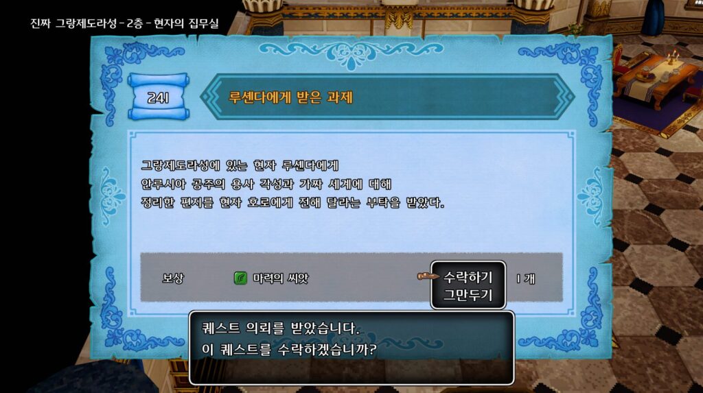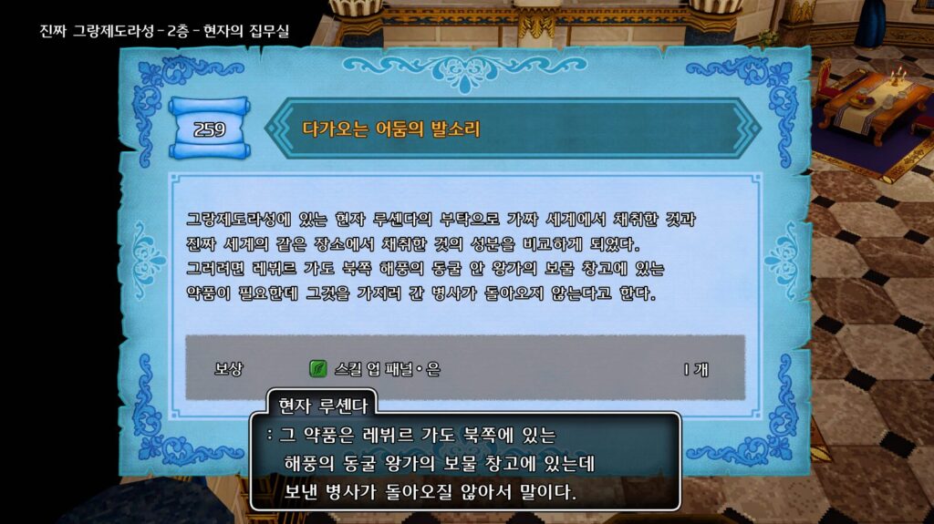 자 이제 모든 아이템을 얻었다면 그랑제도라성 2층 현자의 집무실의 루셴다에게 향하자
