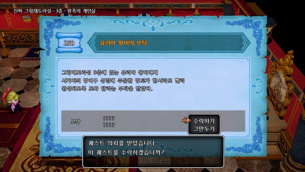 다음 스토리퀘스트는 성3층 안루시아의 어머니인 유리아 왕비에게 받을수있다