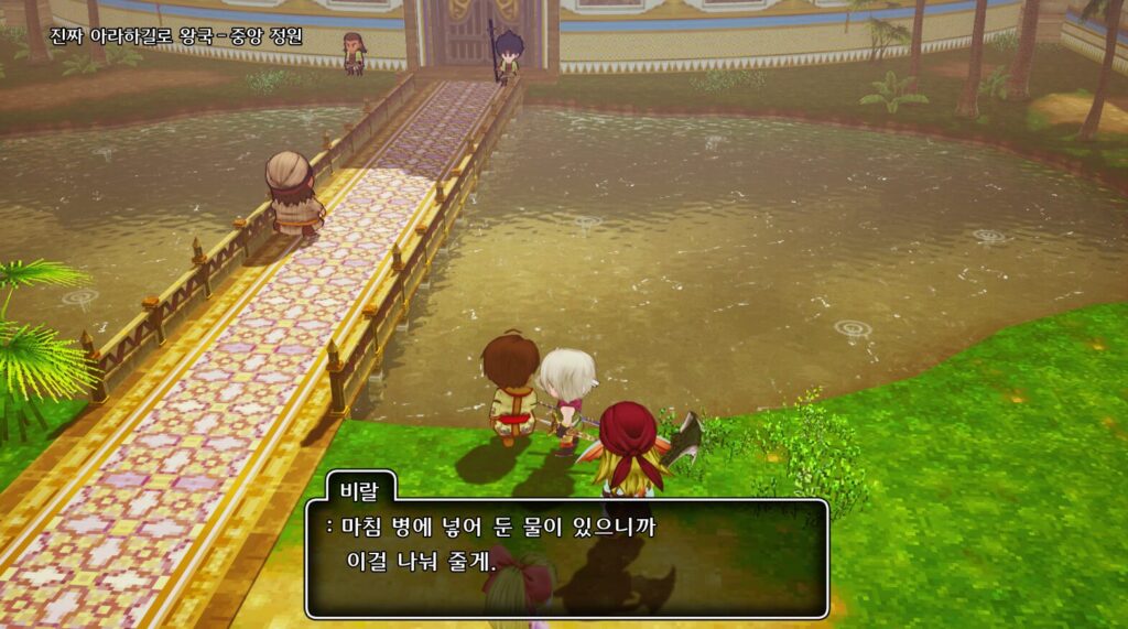 그후 왕국 안쪽중앙 호수앞의 비랄에게 말을걸면 물을 받을수있다
