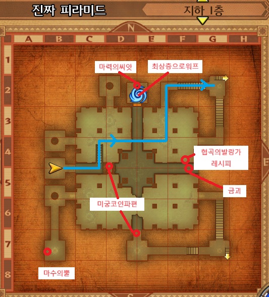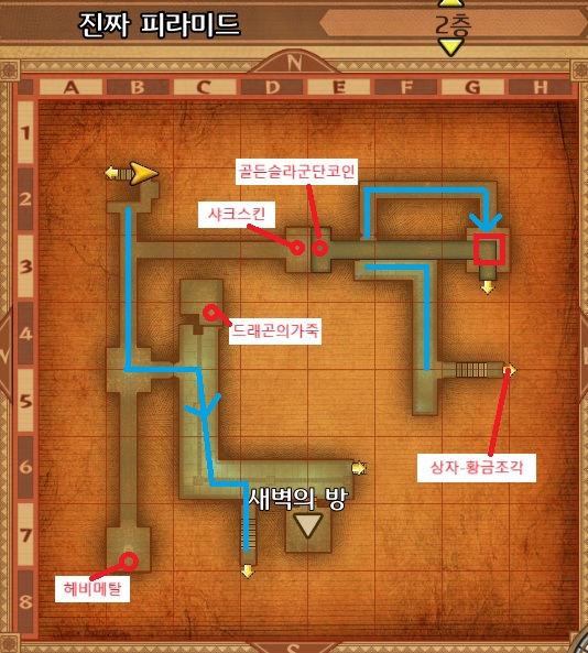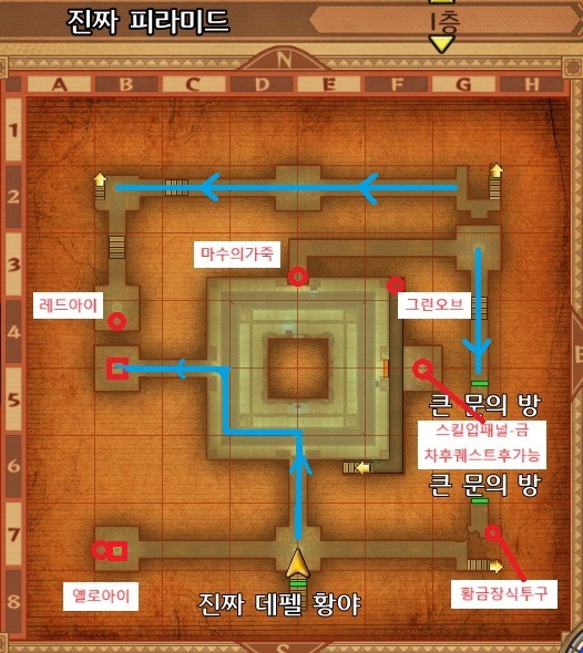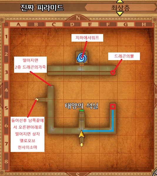진짜 피라미드 – 전공략때 쓰였던 지도니 파란선은 전공략 동선이라 제외하고보면된다