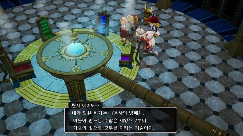 에이도스가 맡은 비기는 용사의방패. 퀘스트를 받은후 포포라지방의 현자의은신처로 향하자