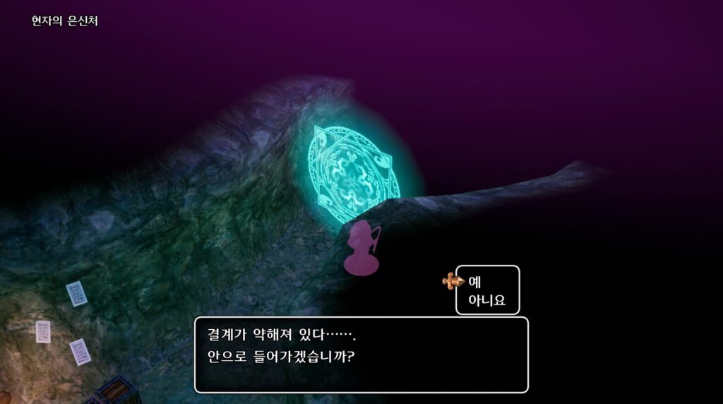 루셴다에게 향하면 이벤트. 파사의비기를 모두익힌 용사의힘으로도 깰수없는 결계