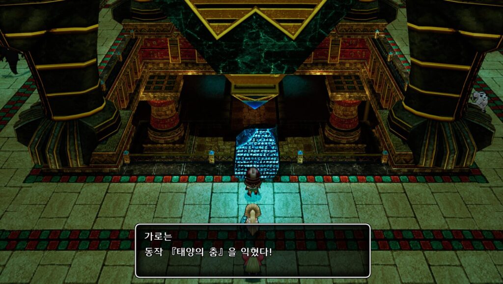 피라미드로 향해 1층 중앙의 비석을 조사하면 태양의춤을 배울수있다