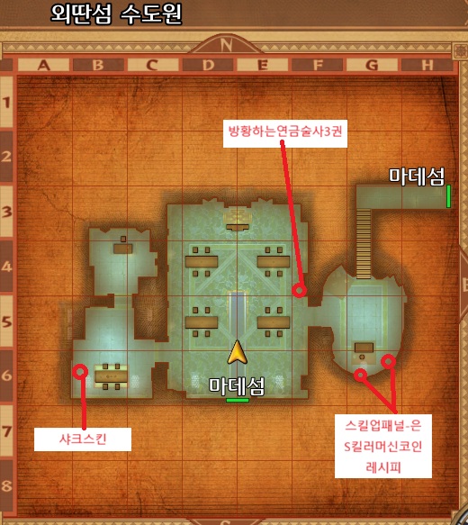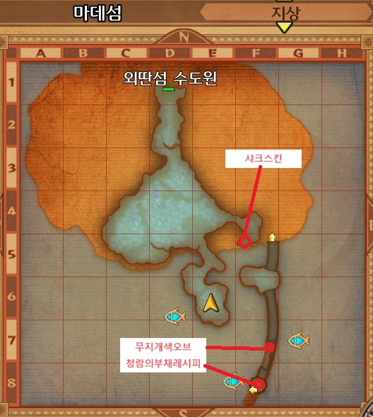 비룡을 타고 둘러보면 아주작은 마데섬이 보인다. 마데섬에 착륙한뒤 북쪽의 외딴섬수도원으로 향하자