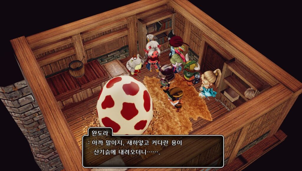 오두막앞의 완도라와 대화하면 이벤트. 이큰알을 집안엔 어떻게 넣은거냐