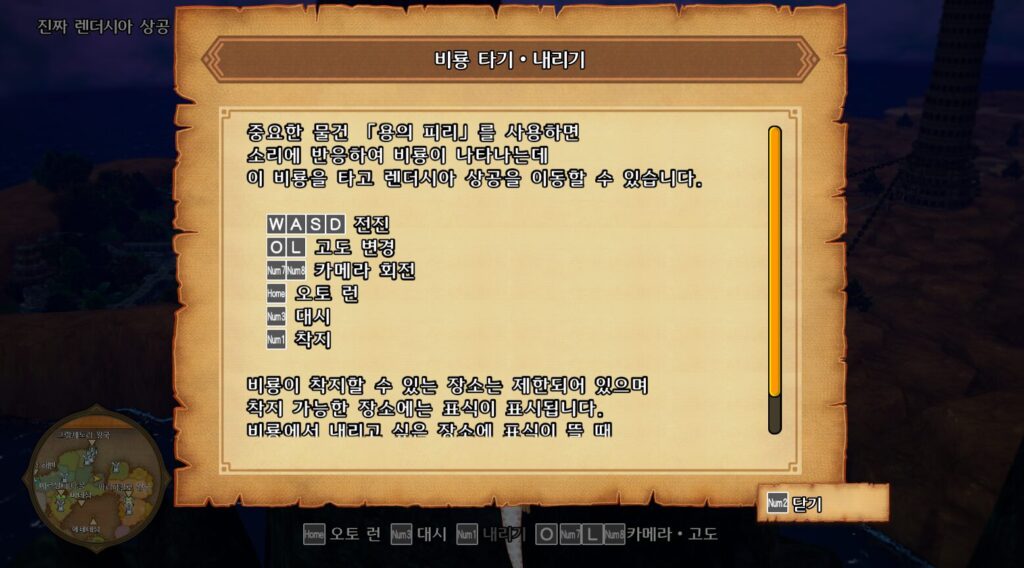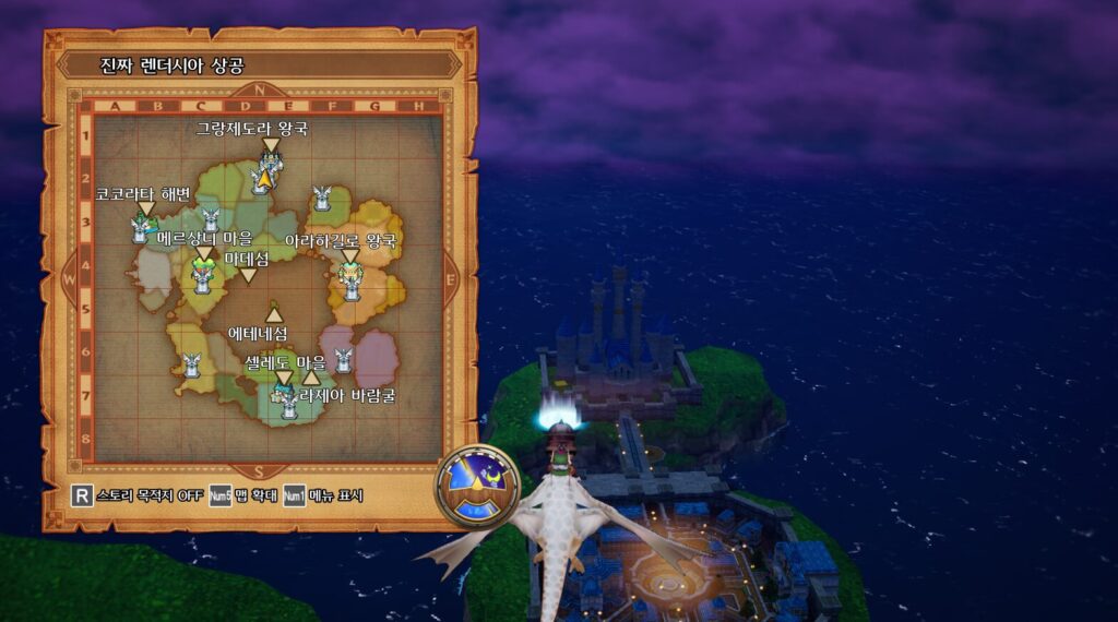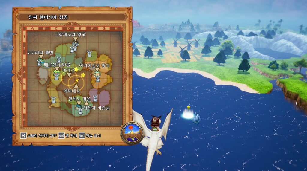 루셴다에게 향해 퀘스트완료후. 이제 비룡을 타고 다음목적지인 주인공의 원래고향 에테네섬으로 향하자