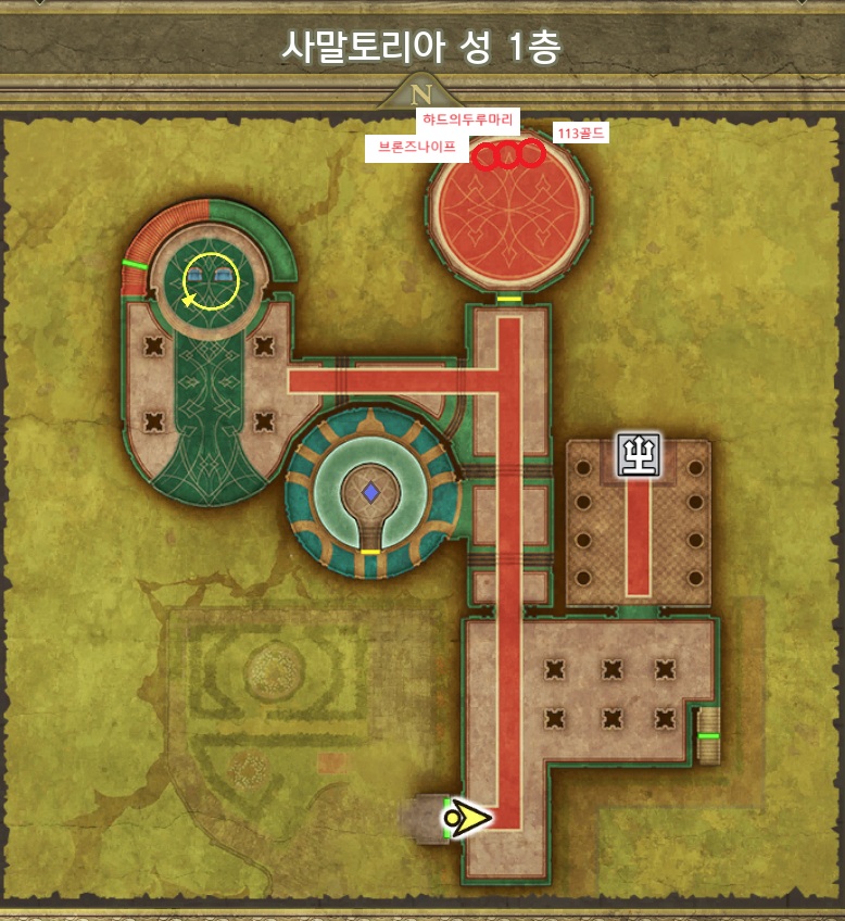 2층 중간에는 HP,MP 회복 지역이 있어 노가다도 가능, 사말토리아왕자가 렙12에 휘파람을 배운다