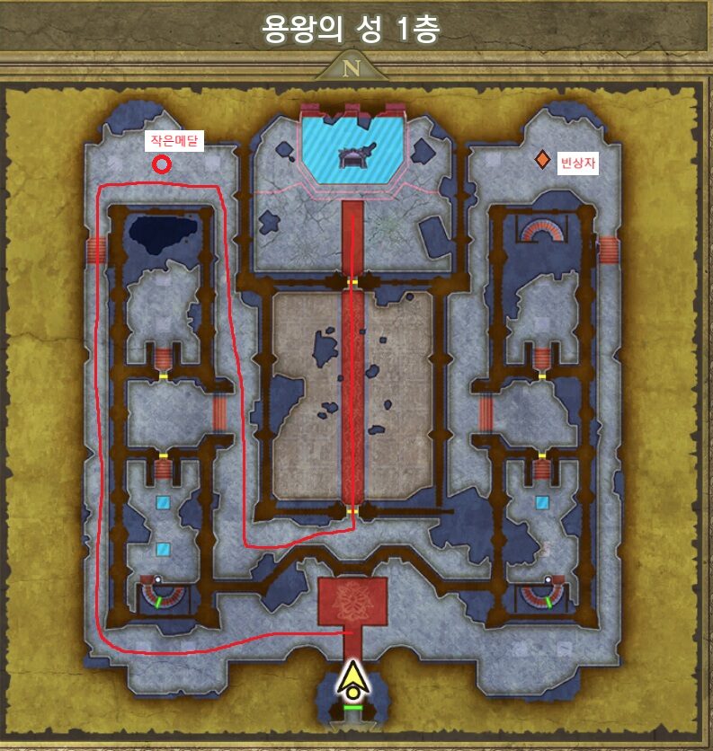 참고용 불꽃의성소의 포탈이동경로. 참고로 불꽃의성소 외관 위쪽맵에 아이템이 꽤있으나 지금은 갈수없다