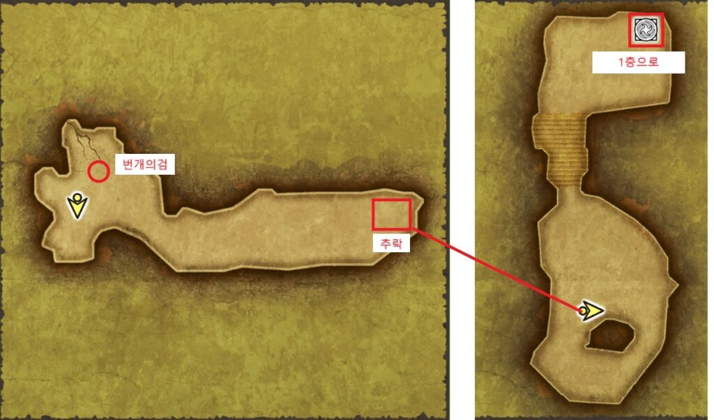 (4층에서 번개의검을 얻는 루트가 있는데 한번떨어지면 1층부터 시작해야하니 주의!)