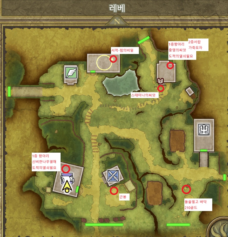 레베 마을 남쪽의 빈공터(초원의성소)로 향하자(지름길->나지미탑 B1F 1시방향)