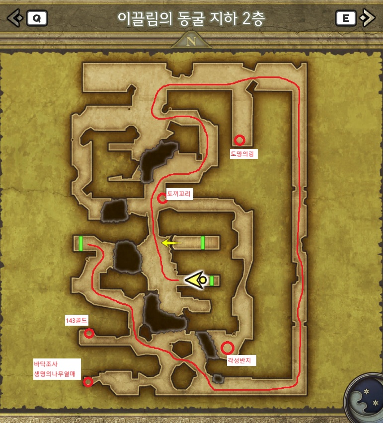 마커가 위치를 표시해주고 이제 던전맵도 다볼수있기에 난이도는 내려간느낌이다