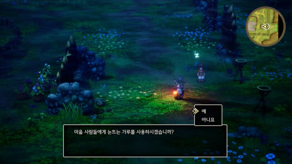 최초 마을에 들어오면 사람들이 잠들어있어 여러 상점이나 여관이용이 불가하다