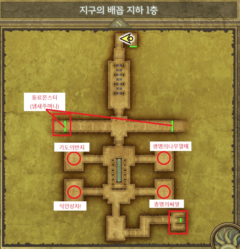 지하1층 중앙길에서 왼편으로 향하면 동료몬스터 방황하는갑옷을 만날수있다 (냄새주머니필요)