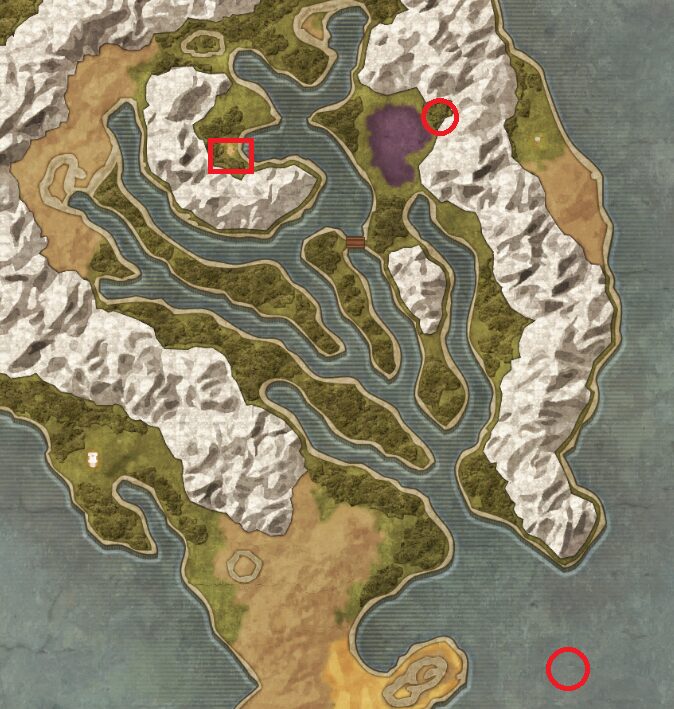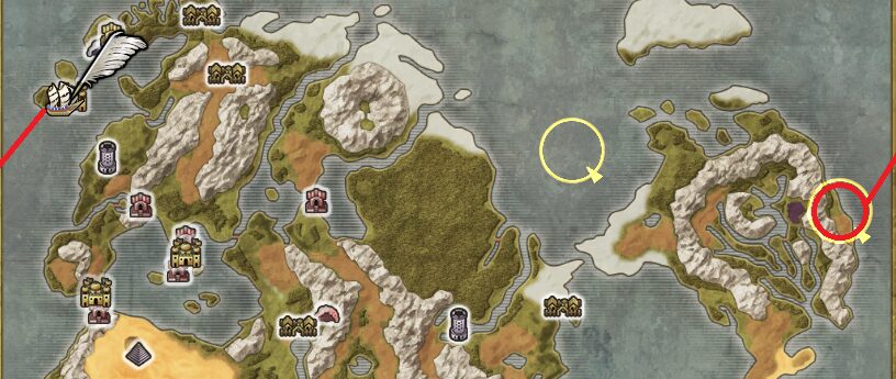 [중앙위쪽] 올리비아곶 – 출구로나가면 – 노르드동굴 북쪽 | 워프존 ->여행자의성당