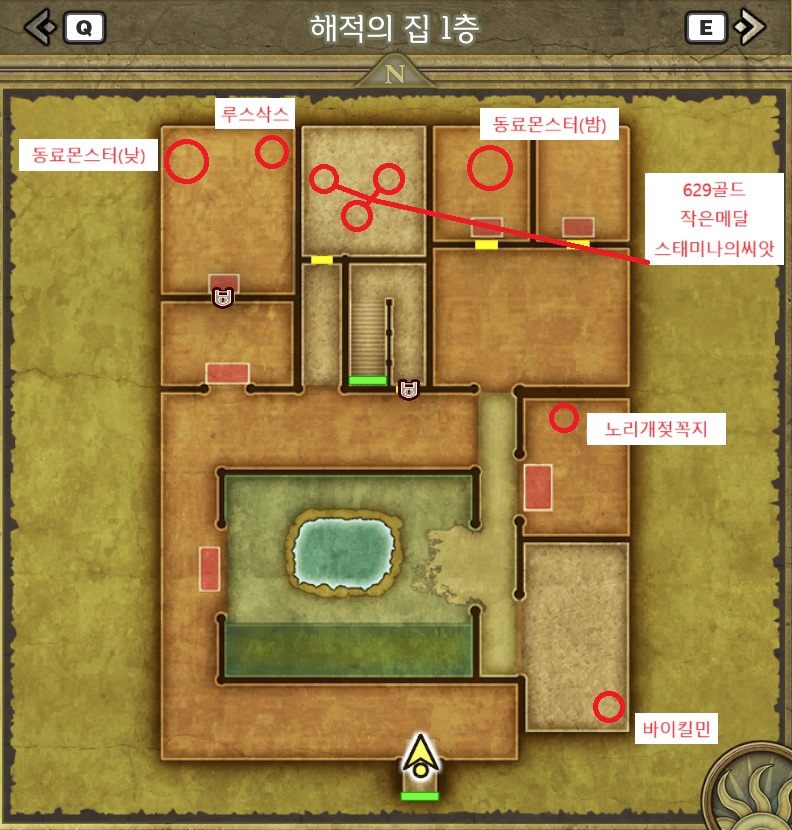 밤에 우측 상단 방에가면 동료몬스터 귀면도사를 만날수있다 (라의거울)