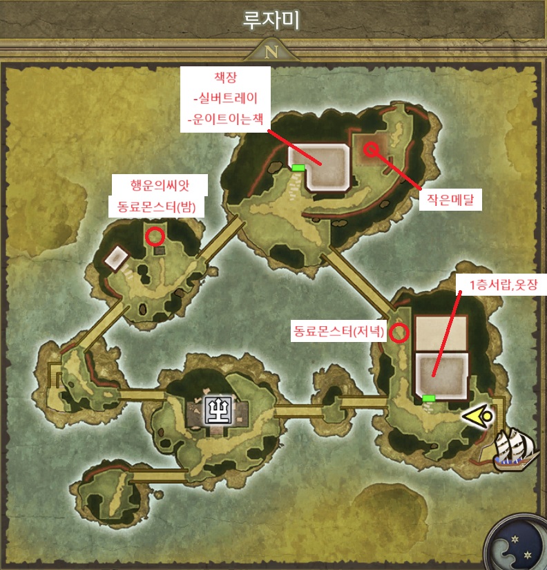 밤엔 제일왼쪽 윗섬 묘지뒤쪽에서 동료몬스터 거북곤을 만날수있다