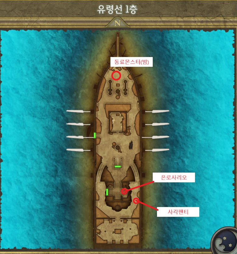 선원의뼈를 소지하는 순간부터 유령선이 해상에 나타난다 미니맵을 보며 로마리아로 루라~