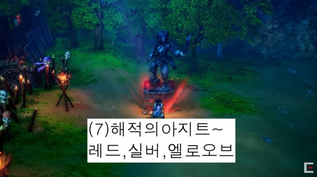 해적의집 우측 붉은빛을 내는 선장조각상을 조사하면