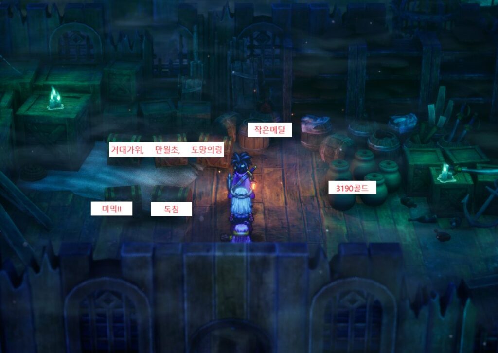 올라와서 밑으로 가면 동료몬스터 미믹을 만날수있다. 아래에서 동료몬스터 와 위쪽에서 골드가들어있는 상자를 먹고 중앙으로 떨어져야한다 (되돌아올수 없음)