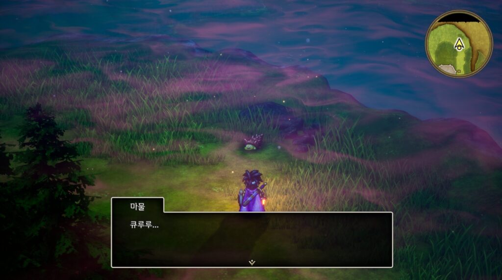 밤에 우측 상단에서 동료몬스터 슬라임팽이를 만날수있다