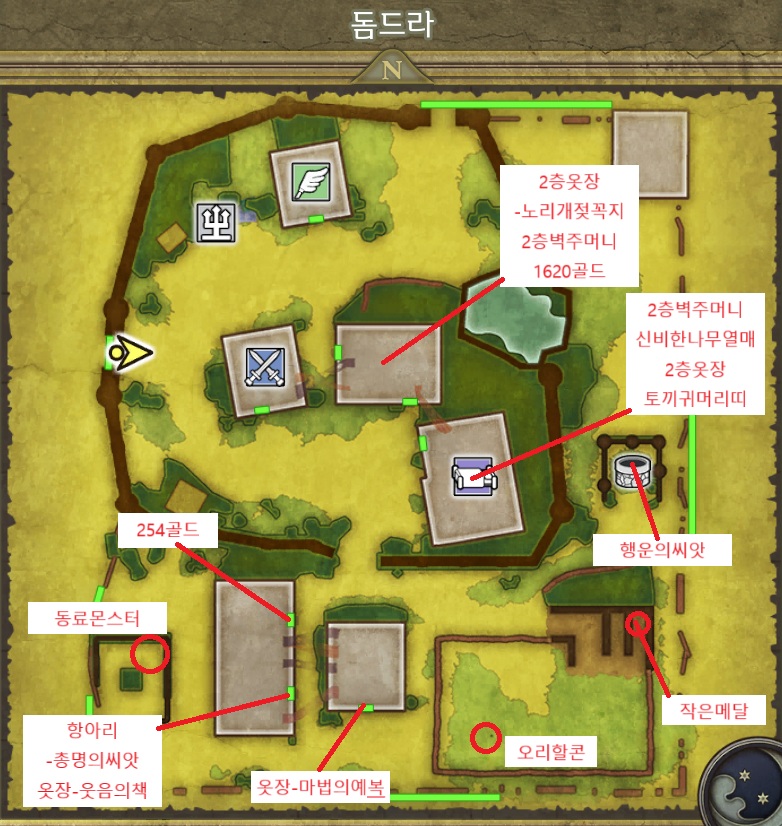 마을 좌측으로 출입하거나 외곽으로 우회하여 왼쪽 상단에가면 동료몬스터 키메라를 만날수있다