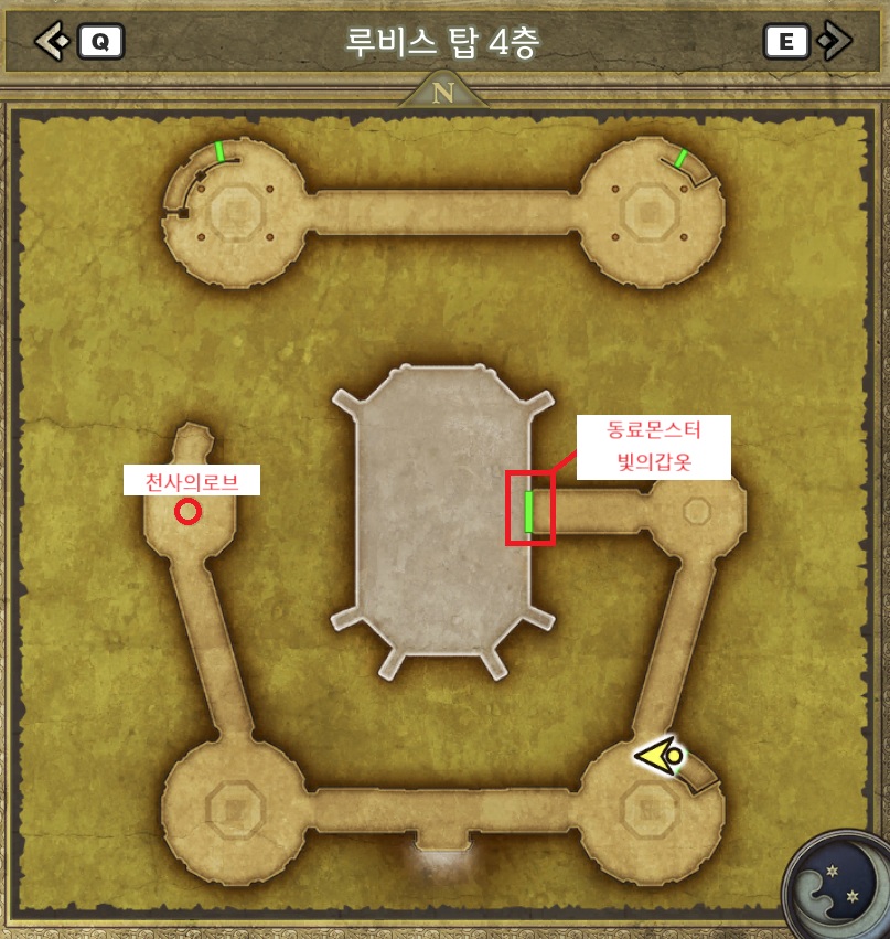 위쪽 통로에서 동료몬스터 메이지키메라를 만날수있다. 아래통로에선 빛의갑옷을 얻을수있다