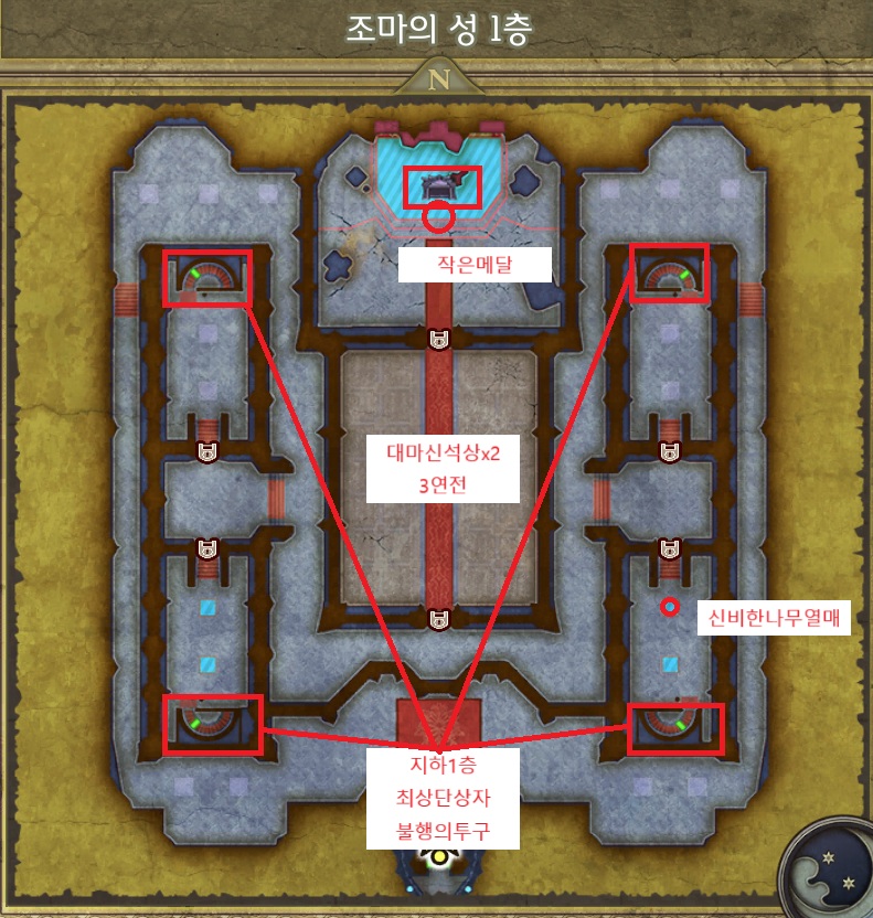 마지막 제물의제단까지 내려오면 좌측에서 조마성입구까지 워프존을 연결해놓을수있다 (정비하자)
