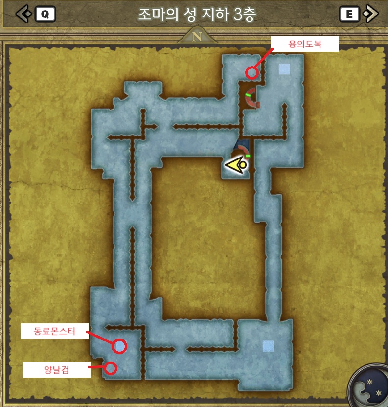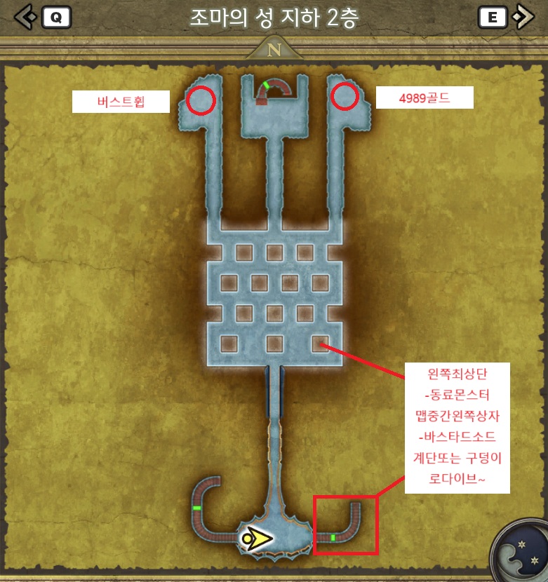 아이템과 동료몬스터를 챙기면 크게 우회하여 지하4층으로 향하자