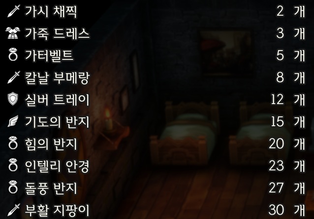| 30 | 힘의반지 | 90 | 부활의지팡이 |