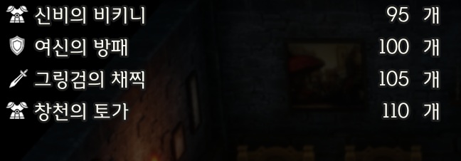 | 50 | 닌자의옷 | 100 | 그린검의채찍 |